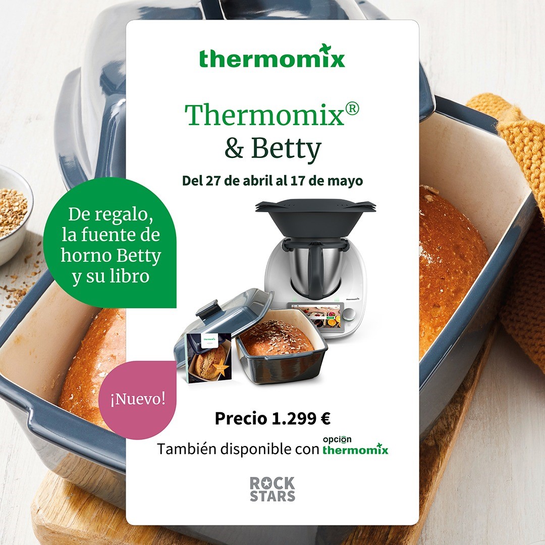 Del 27 de abril al 17 de mayo Thermomix regala la fuente Betty, con tapa, para hacer tus mejores panes, asados, etc., junto con su libro de recetas