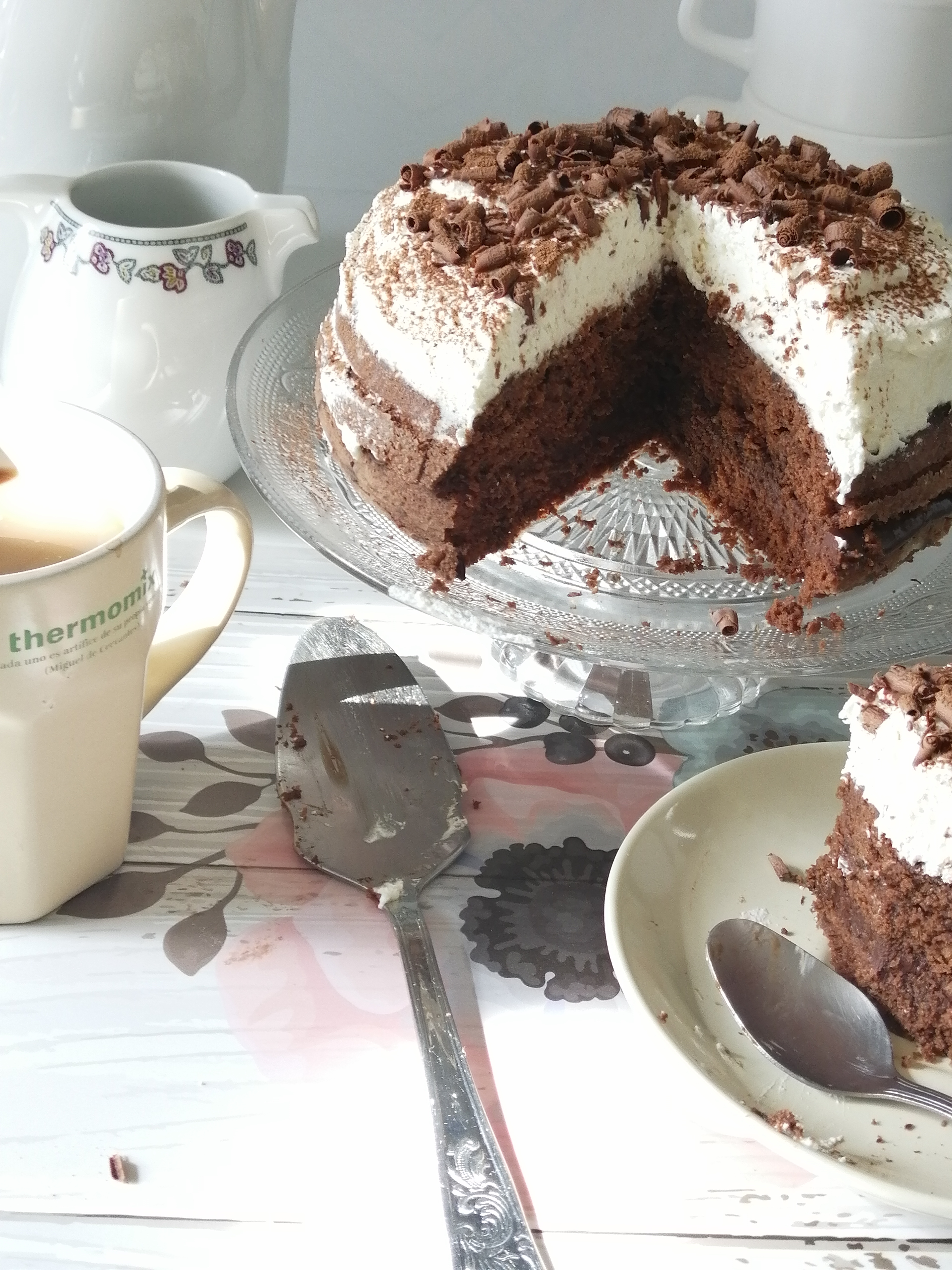 Del Taller Especial para el Día de la Madre preparamos esta tarta de chocolate al vapor con nata montada.