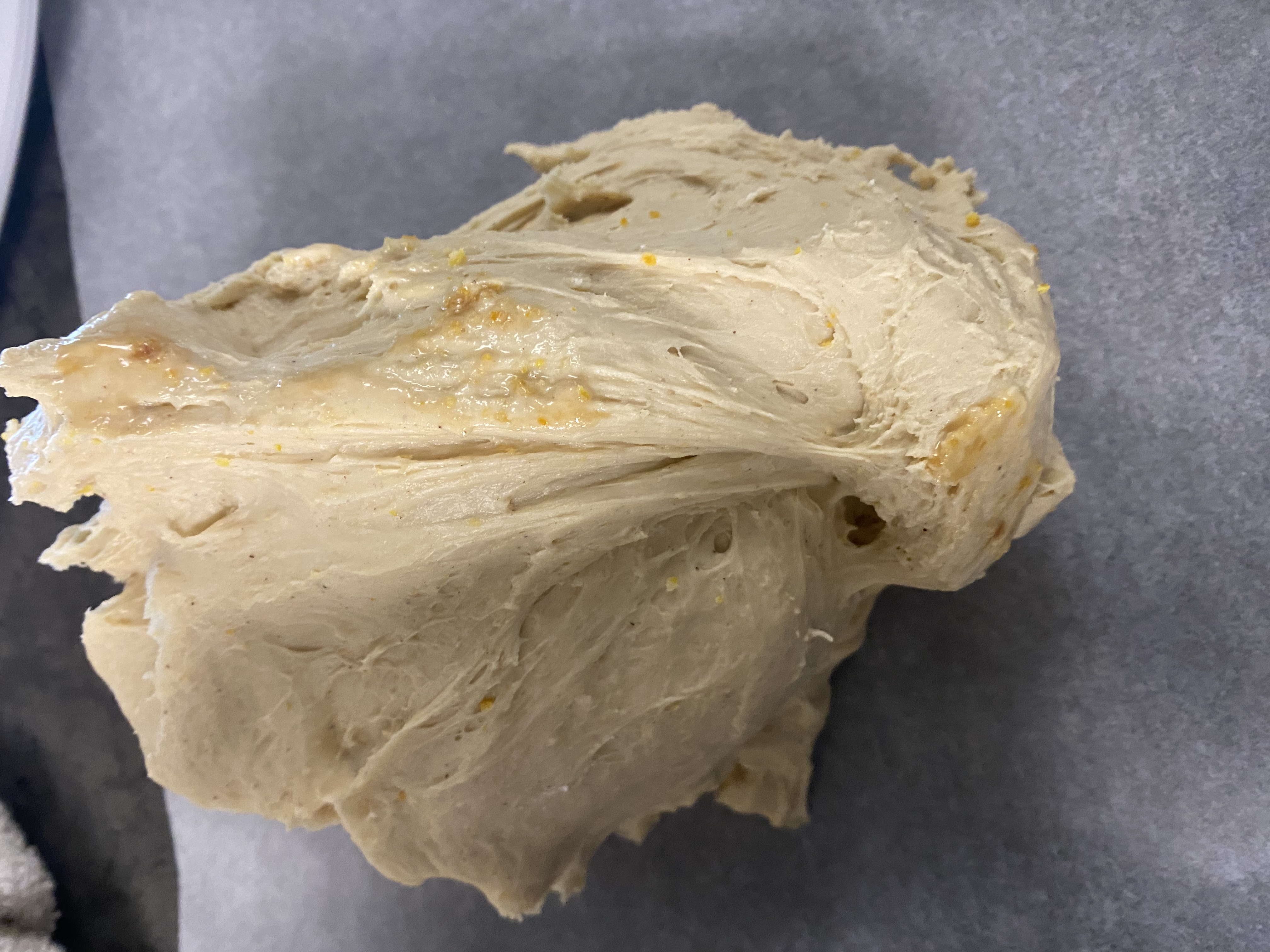 4. Añadir de nuevo los otros 300g de harina. Amasar 4 minutos. Velocidad espiga o función amasar.