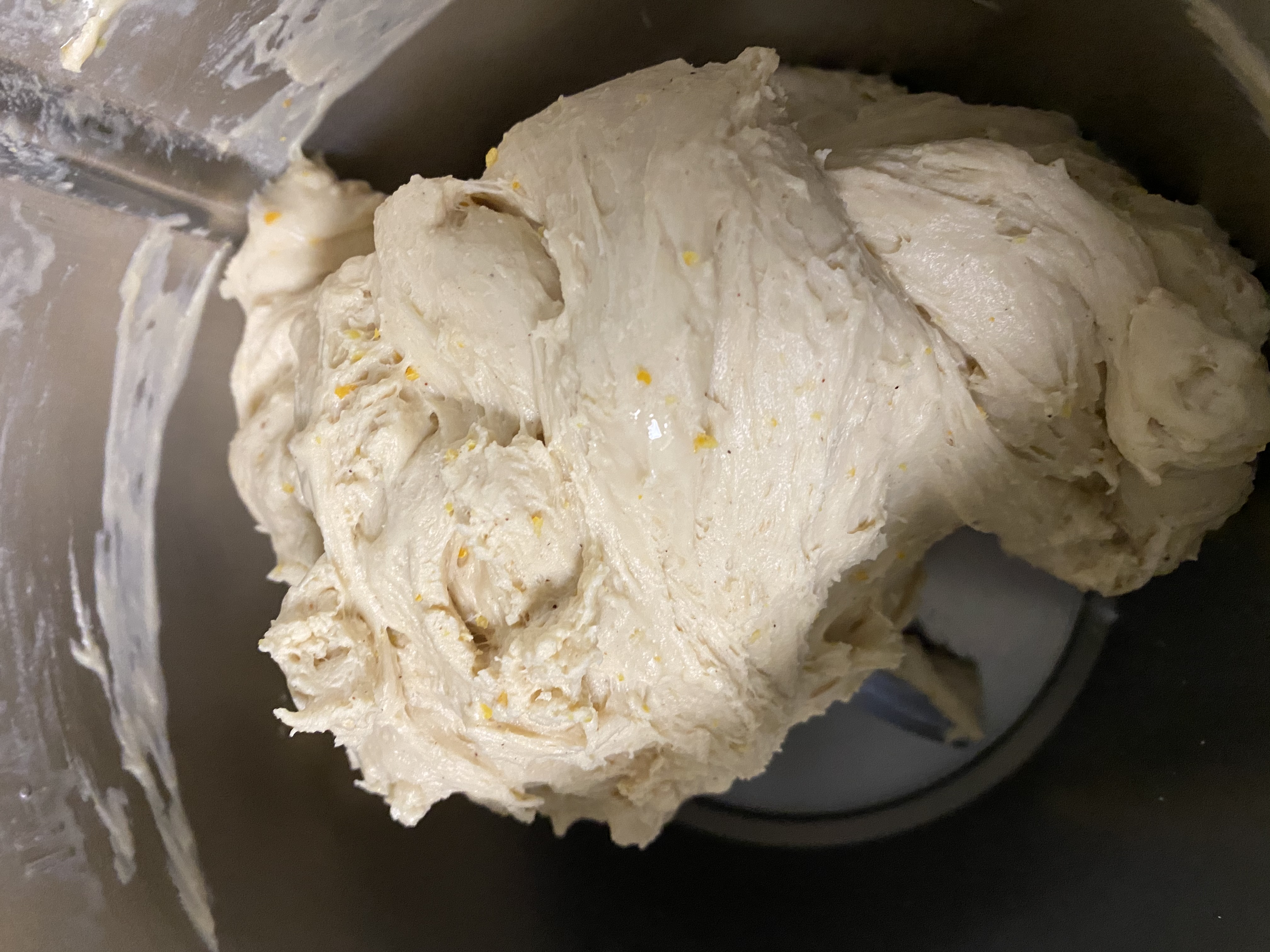 3. Añadir 300 g de harina + sal + canela polvo. Mezclar al 6, 20 segundos.