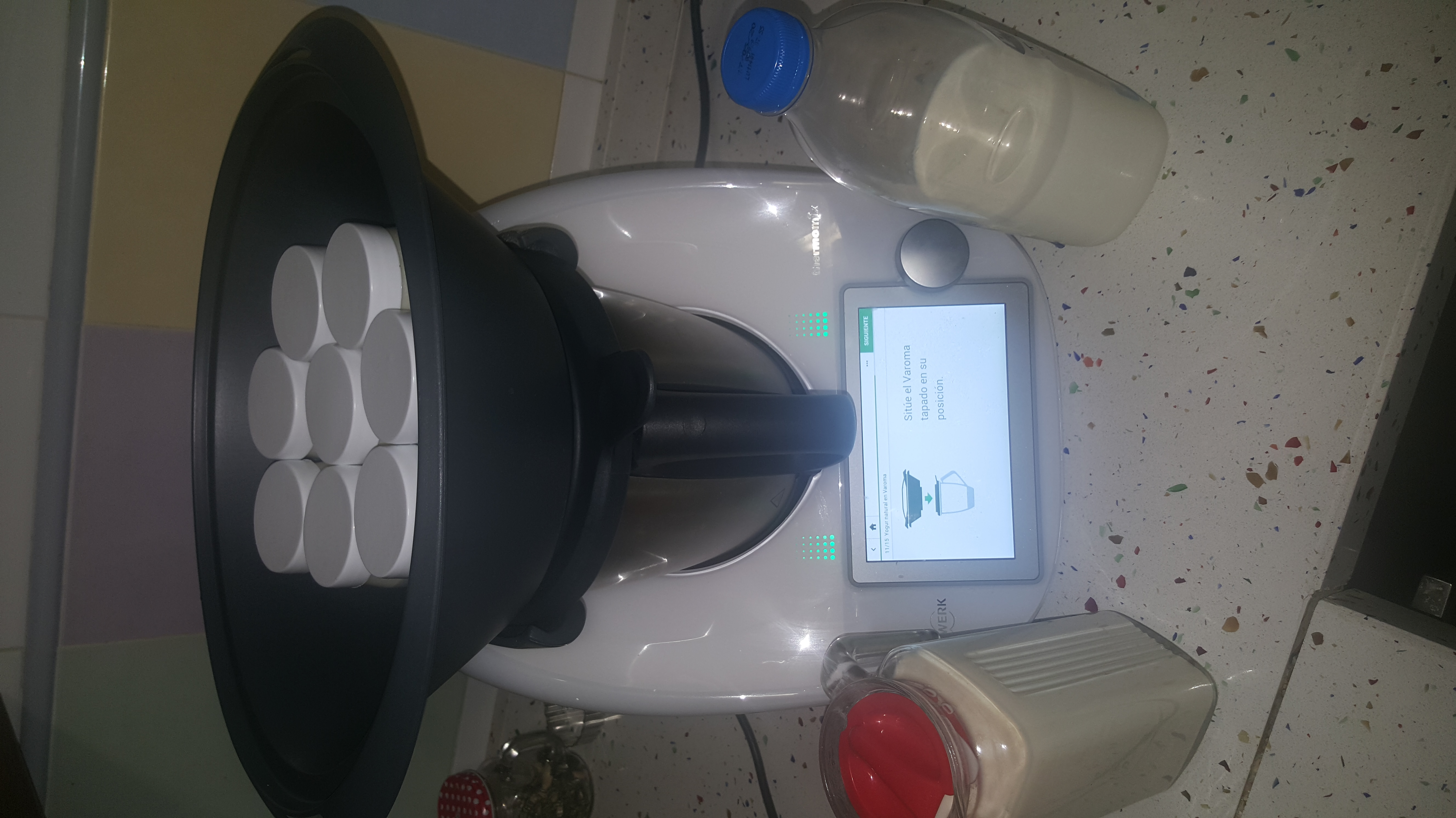 Vertimos en los vasitos, tapamos con las tapas y los ponemos en el varoma.
