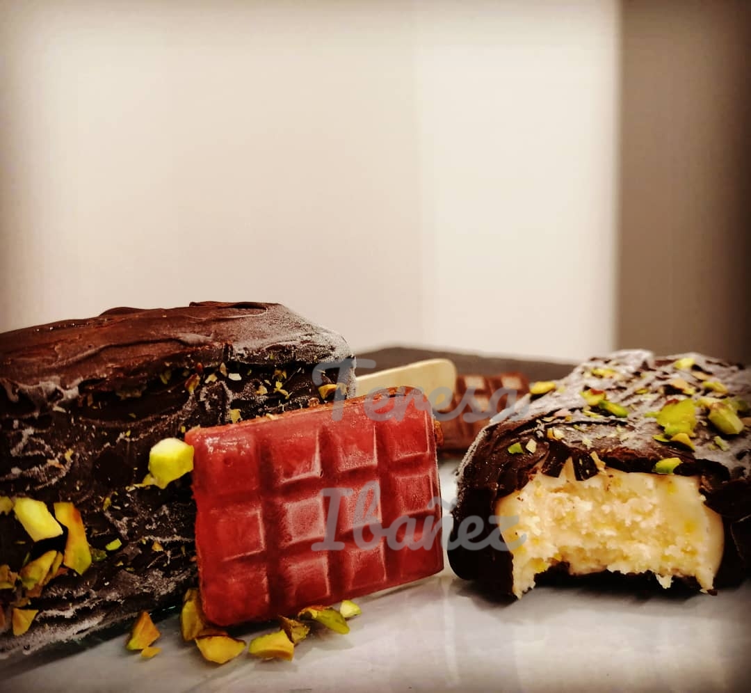Es un helado muy saludo porque es a base de yogur y cáscara de naranja y la cobertura de chocolate es 70% por lo que es mucho más sano que otras coberturas.