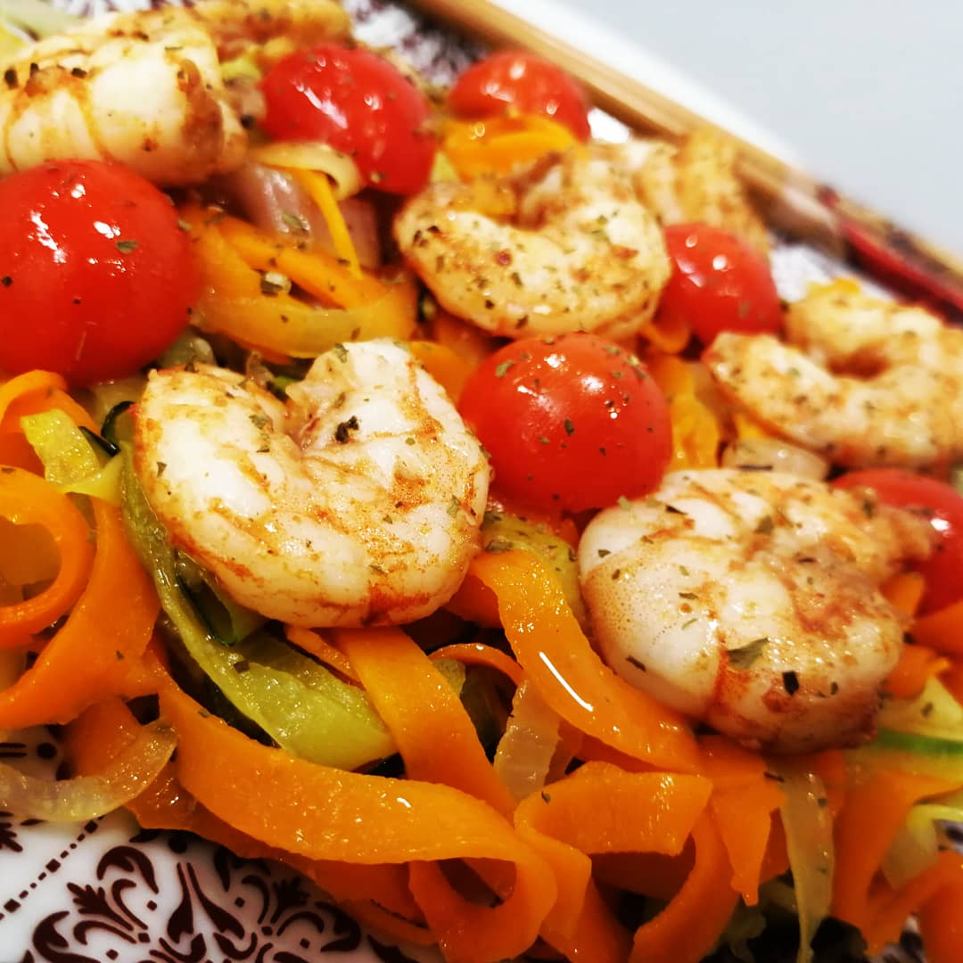 WOK DE VERDURAS, LANGOSTINOS Y TOMATITOS CHERRYS CON Thermomix®