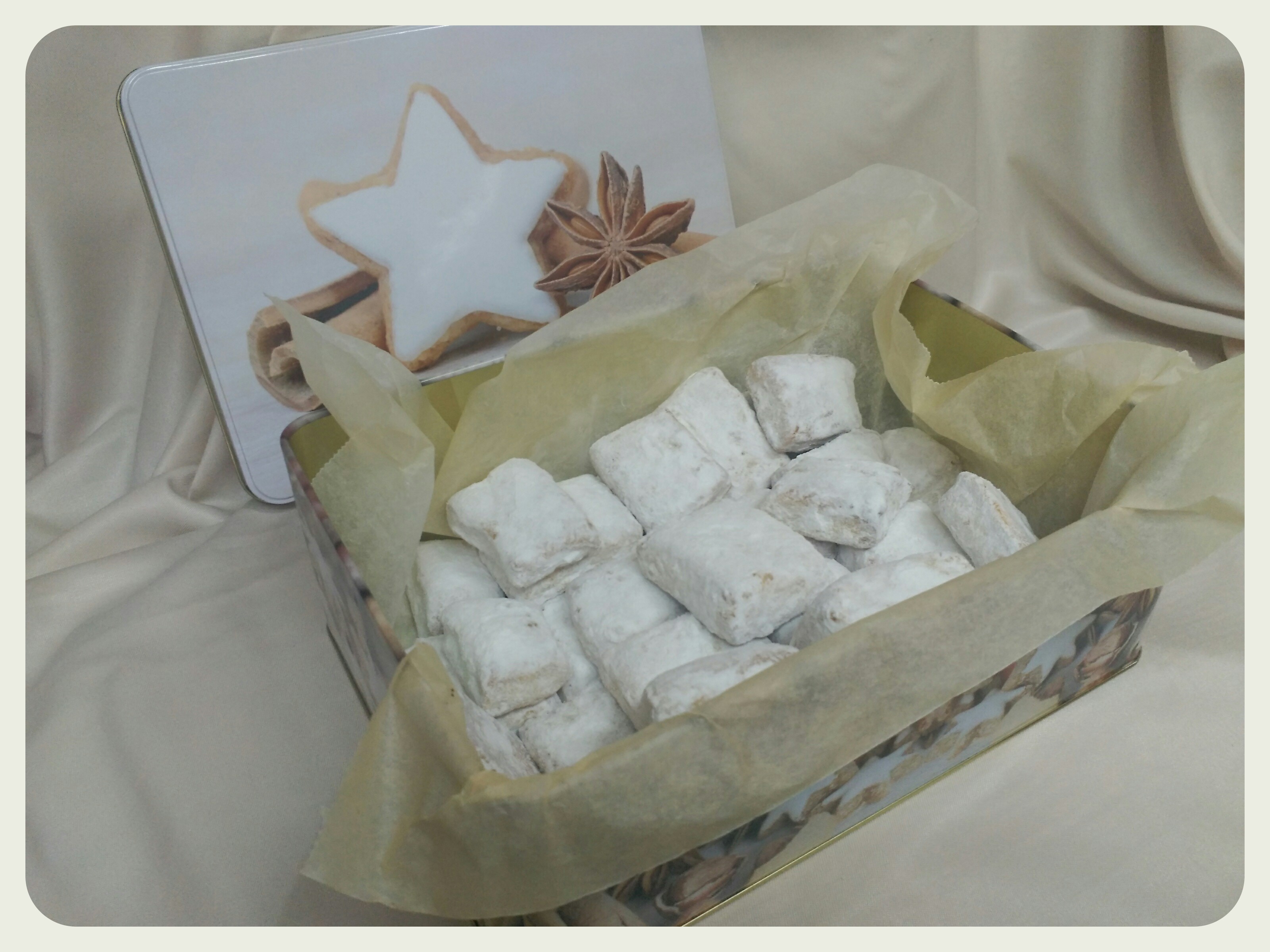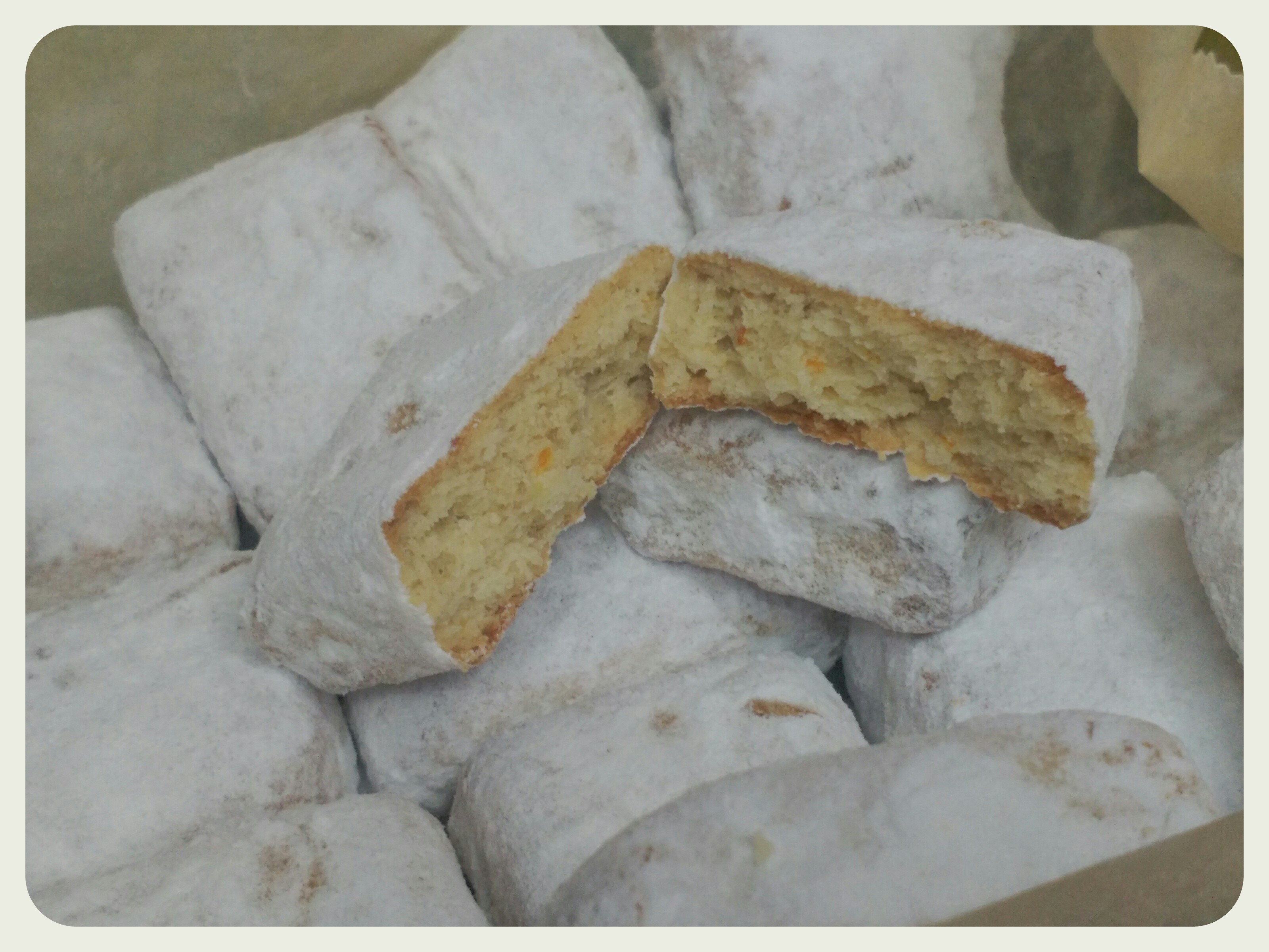 9.- Reboce las hojaldrinas de naranja con el azúcar glas cuando estén templadas. Cuando se enfríen del todo vuelva a espolvorear azúcar glas por encima y guárdelas en una caja o recipiente hermético separadas con papel de seda.