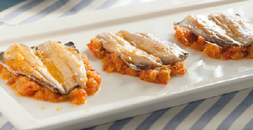 5.- Sirva el sofrito en un plato con las sardinas encima.