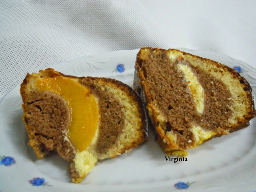 BIZCOCHO VETEADO CON MELOCOTONES Y CREMA DE REQUESON CON Thermomix