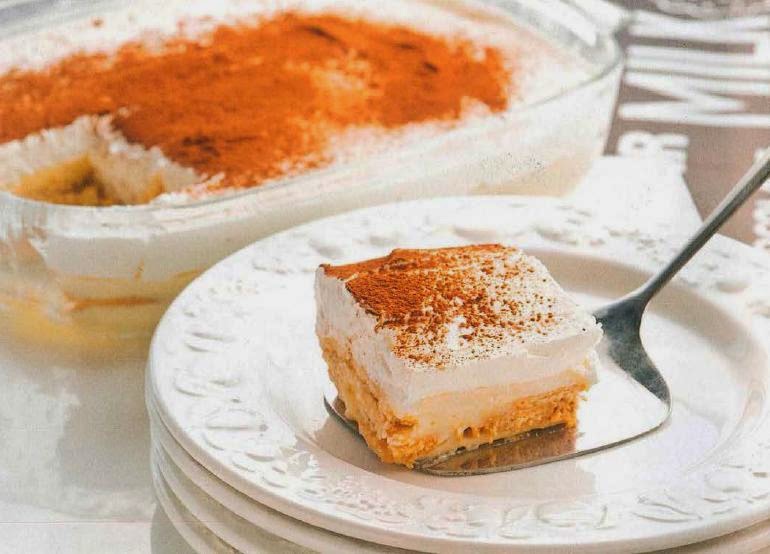 - En un molde de cristal, rectangular o cuadrado. vierte la tercera parte de la crema. Cubra con una capa de galletas, otra de crema, otra de galletas y terminar con una capa de crema.